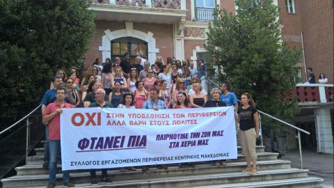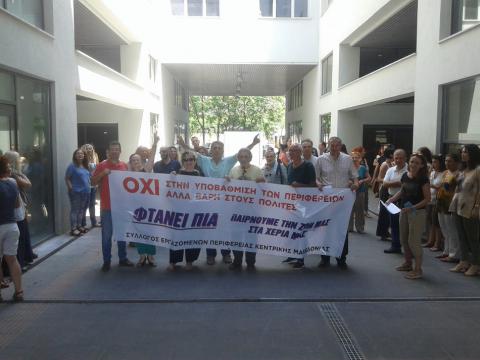 Συμβολικές καταλήψεις πραγματοποίησαν, χθες Τρίτη 27/6/2017, οι εργαζόμενοι στην Περιφέρεια Κεντρικής Μακεδονίας, στο παλιό και στο νέο κτίριο Διοίκησης στη Θεσσαλονίκη,καθώς και στις έδρες όλων των Περιφερειακών Ενοτήτων όπου λειτουργούν Τοπικά Τμήματα του ΣΕΠΕΚΕΜ (συνημμένες σχετικές φωτογραφίες).